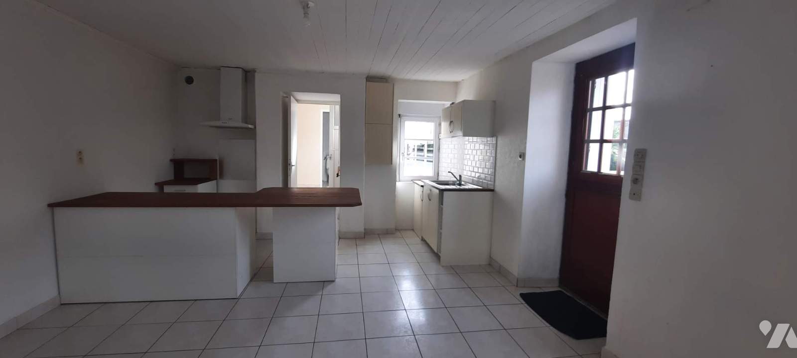 Au rez-de-chaussée : un salon, une salle à manger avec cuisine, une arrière cuisine, une salle d'eau avec wc.