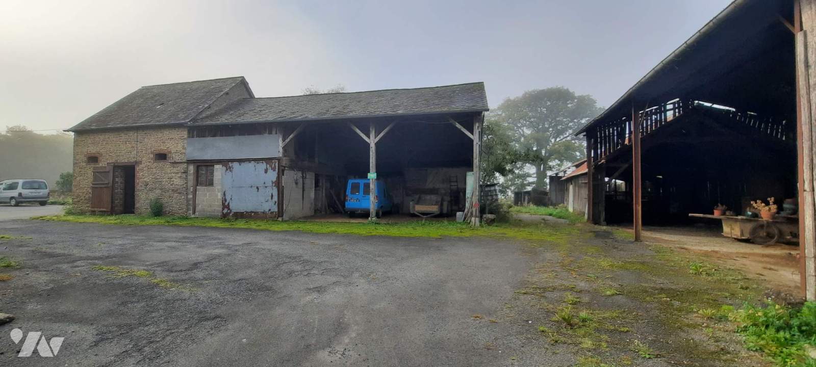 Dépendance en pierres en face de la maison. Anciens préau. Jardin. Puits.