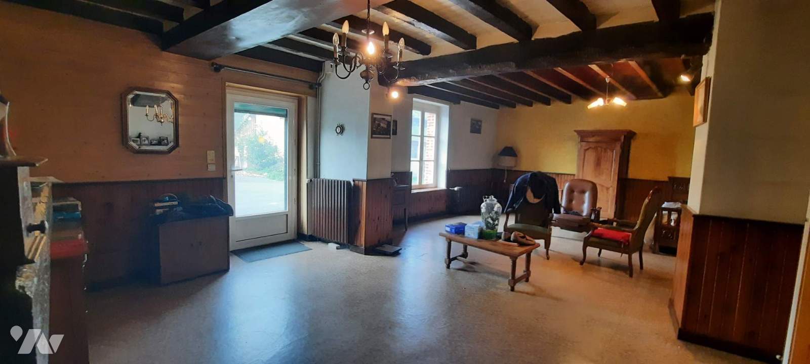 Longère en pierres, d'une surface habitable de 100 m², composée, de plein pied, d'une grande pièce de vie, une cuisine, une chambre, une salle d'eau, wc, chaufferie, celliers. Attenante à l'habitation ancienne étable de 67 m² pouvant être transformée en habitation. Greniers au-dessus.